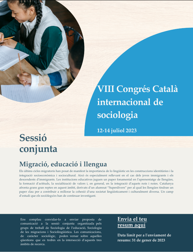 Congrés Català de Sociologia (crida). Taula de sociolingüística, i sessió conjunta de migracions, educació i llengua.