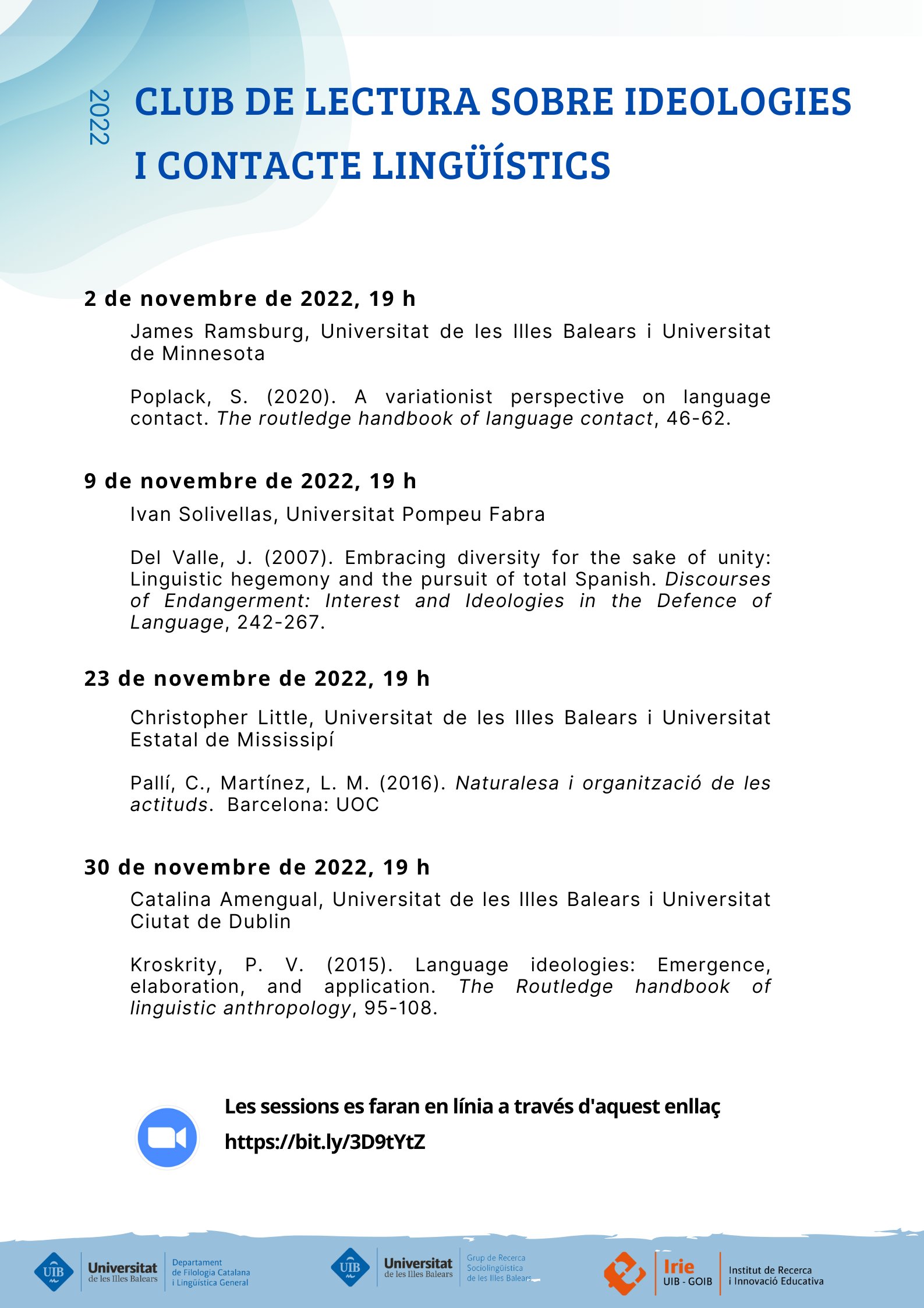 Grup de lectura ideologies i contacte, i Seminaris Virtuals del GRESIB