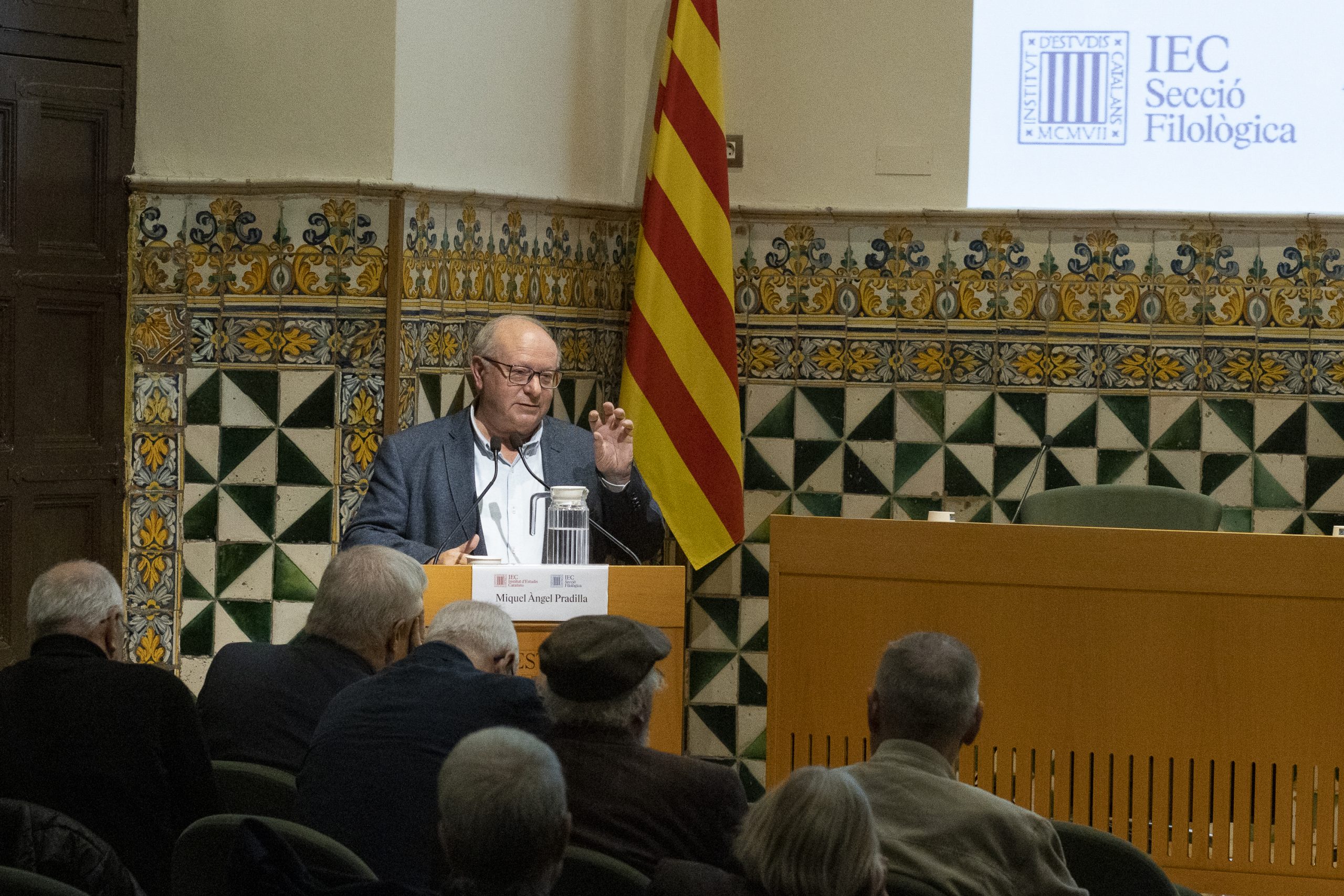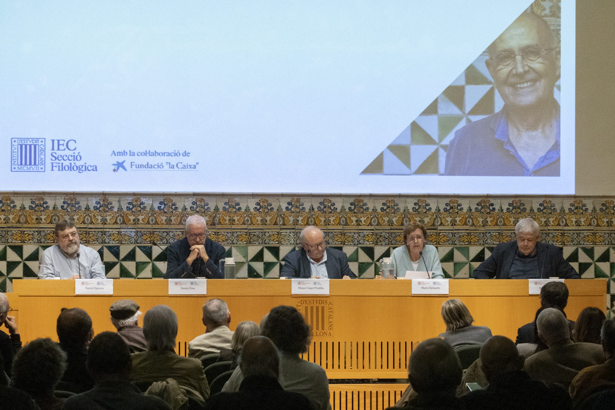 Intervindran en l’acte Francesc Xavier Vila, conseller de Política Lingüística de la Generalitat de Catalunya; Nicolau Dols, president de la Secció Filològica; Miquel Àngel Pradilla, president del Grup de Treball EstatusCat de la Secció Filològica; Damià Pons, membre de la Secció Històrico-Arqueològica; Marta Xirinachs, tècnica i responsable a Política Lingüística del 1981 al 2022; Narcís Figueras, professor de la Universitat Oberta de Catalunya; Emili Boix, catedràtic de sociolingüística jubilat; Ramon Sistac, membre de la Secció Filològica; Enric Ribes, membre de la Secció Filològica, i Isidor Marí, membre de la Secció Filològica.