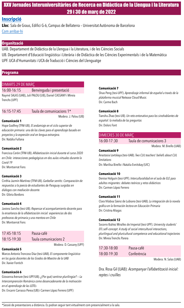 XXV Jornades Interuniversitàries de Recerca en Didàctica de la Llengua i la Literatura (UAB)